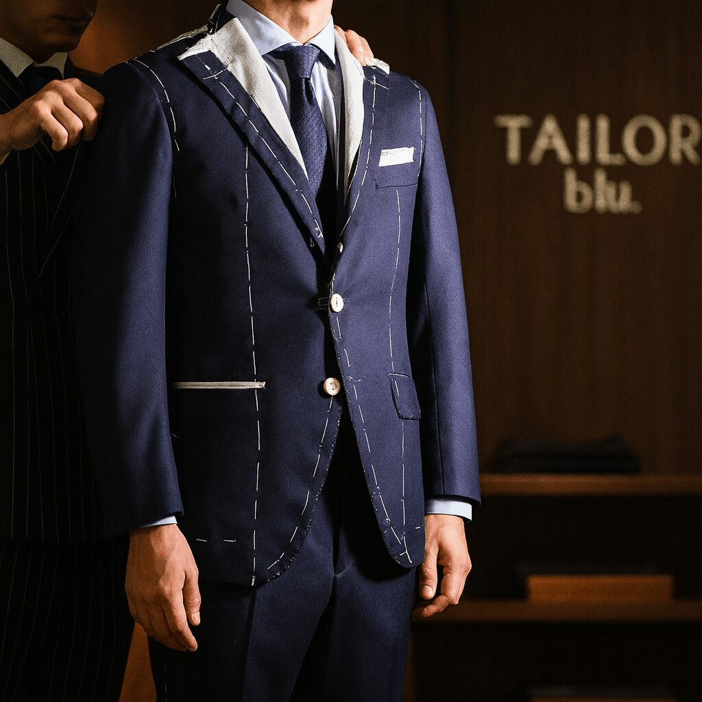 仮縫い試着は、仕立て途中のスーツを一度試着し、フィット感やシルエットを確認する大切な工程です。