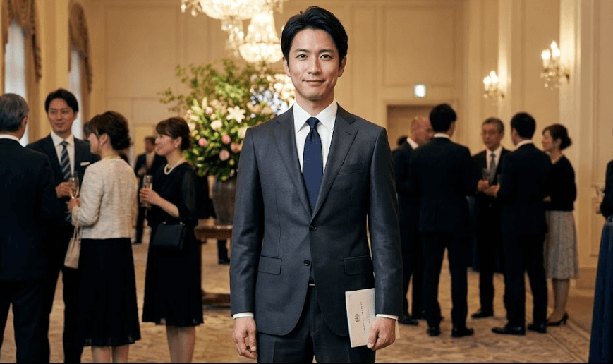 注意点は、艶が強すぎる生地や柄の主張が大きいものは会場で目立ちやすいこと。シャツは白、ネクタイは無地〜小紋でまとめ、サイズは肩と胸の可動域を優先すると、礼装感が崩れません。