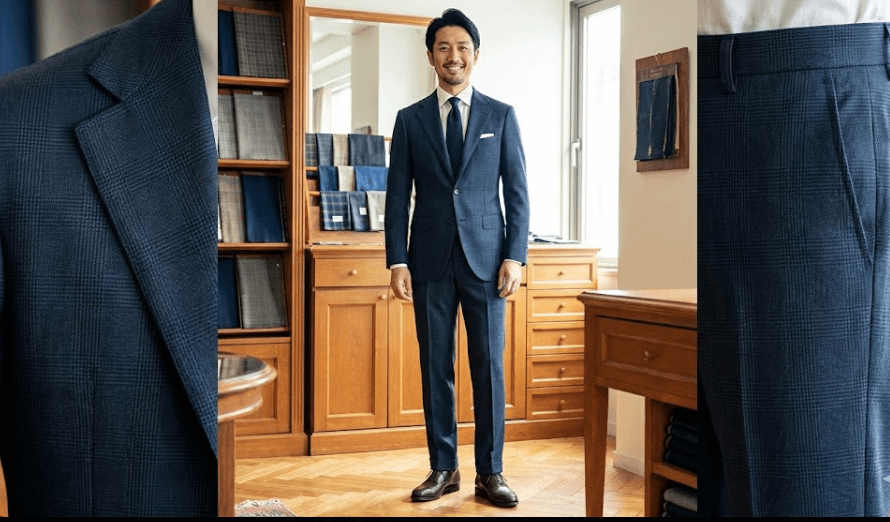 たとえば、同じネイビーでも深みのあるトーンが出やすく、室内では落ち着き、光の当たり方で品よく表情が変わります。ストライプやチェックも主張が強すぎないため、仕事でも式典でも合わせやすく、着回しで差が出ます。