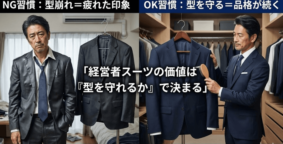 経営者スーツの価値は、着る回数ではなく「型を守れるか」で決まります。