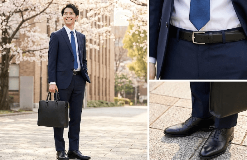 入学式では、小物の選び方ひとつで清潔感や印象が大きく変わります。靴やベルト、鞄だけでなく、時計やハンカチなど細部まで気を配ると、全体のまとまりが生まれます。